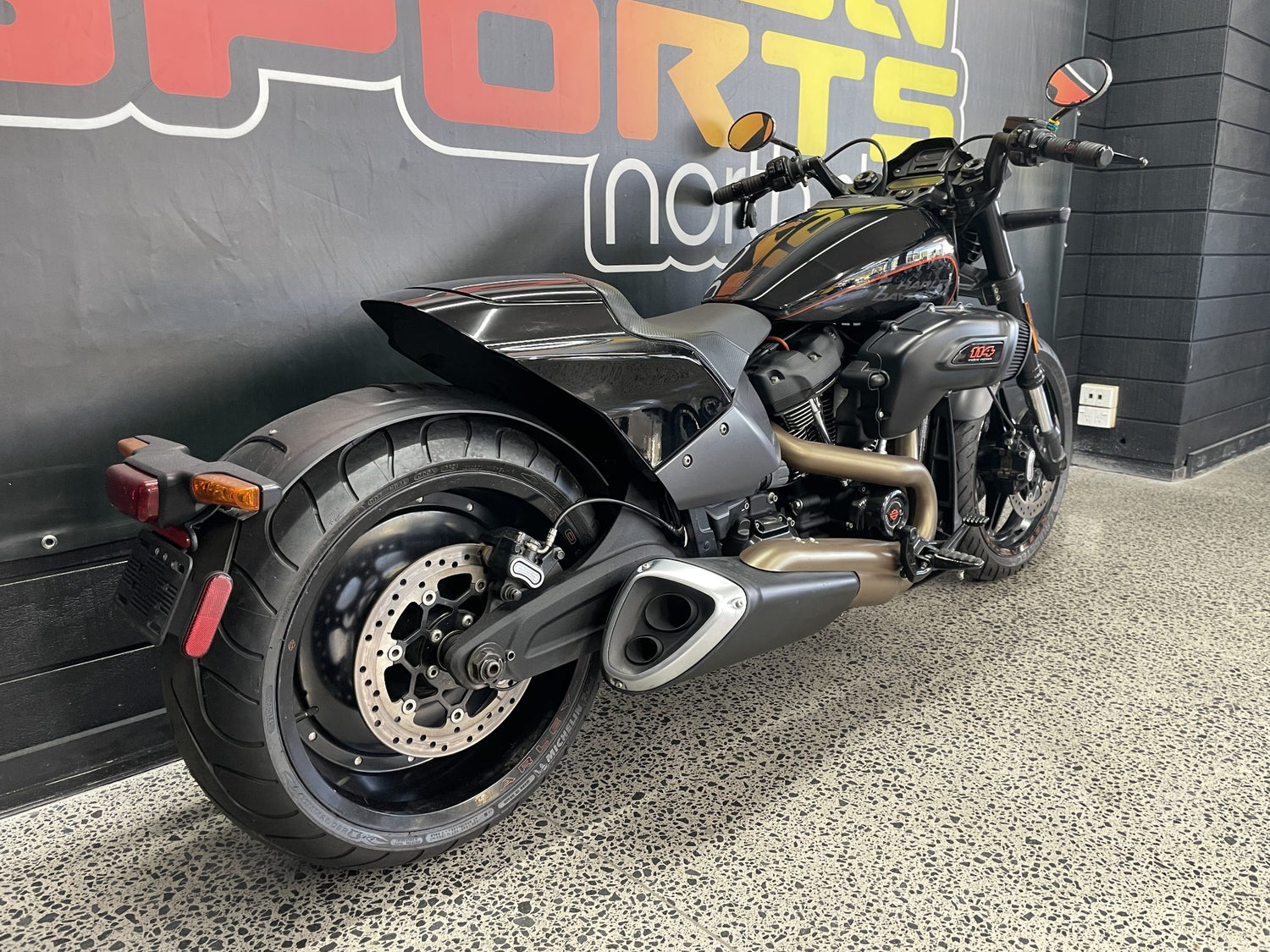 This 2019 Harley Davidson FXDR 114ci is in good condition with original components. Converted to mid-controls for a more sporty riding position.