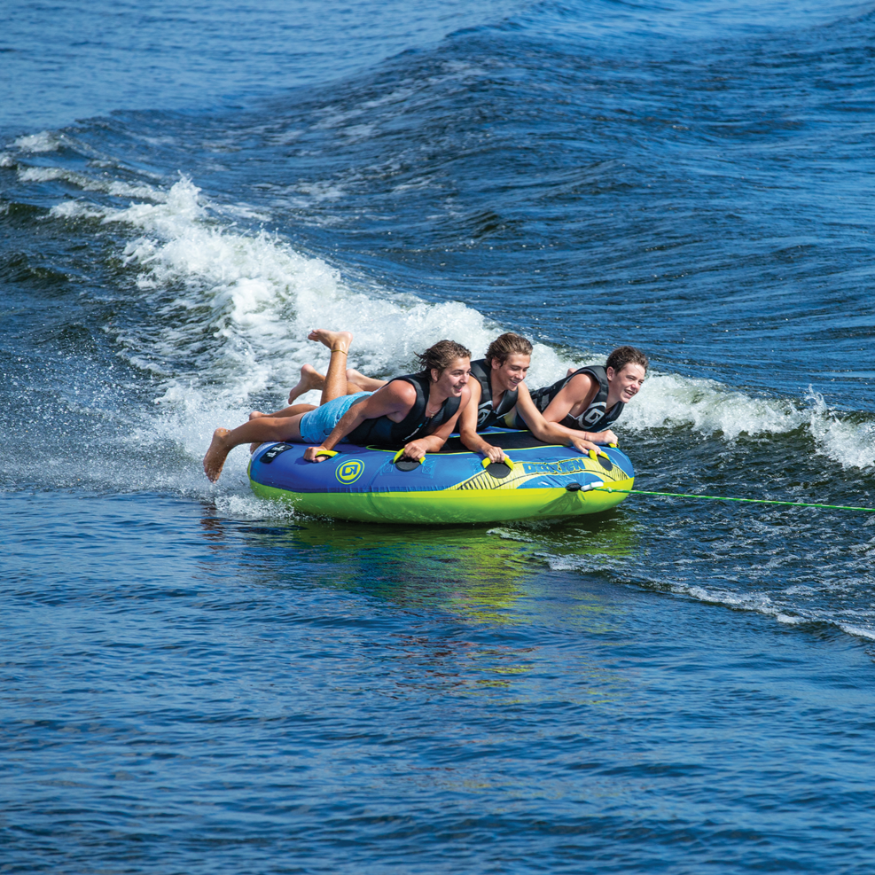 The Ultra Screamer provides plenty of screams and laughter while the riders get whipped out and bounced around to their heart’s content. The flat deck with its EVA pads is very comfortable to lay or kneel on as the riders grip the handles and adjust for any upcoming challenges headed their way. There's no doubt that this three-rider deck tube generates tons of fun for everyone!
