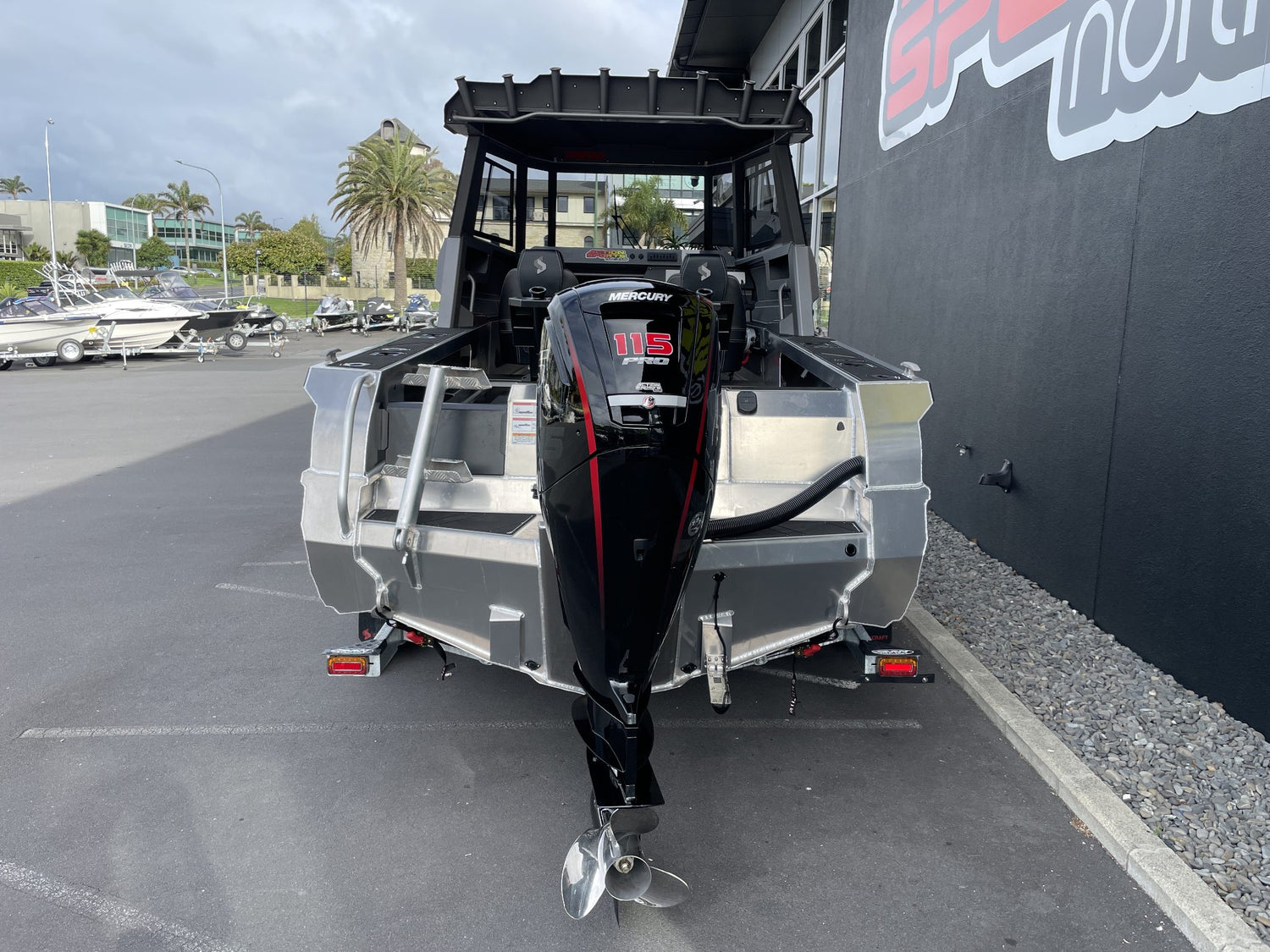 Portside Rear 2-Step Boarding Ladder w/ Pontoon Alloy Boarding Handrail